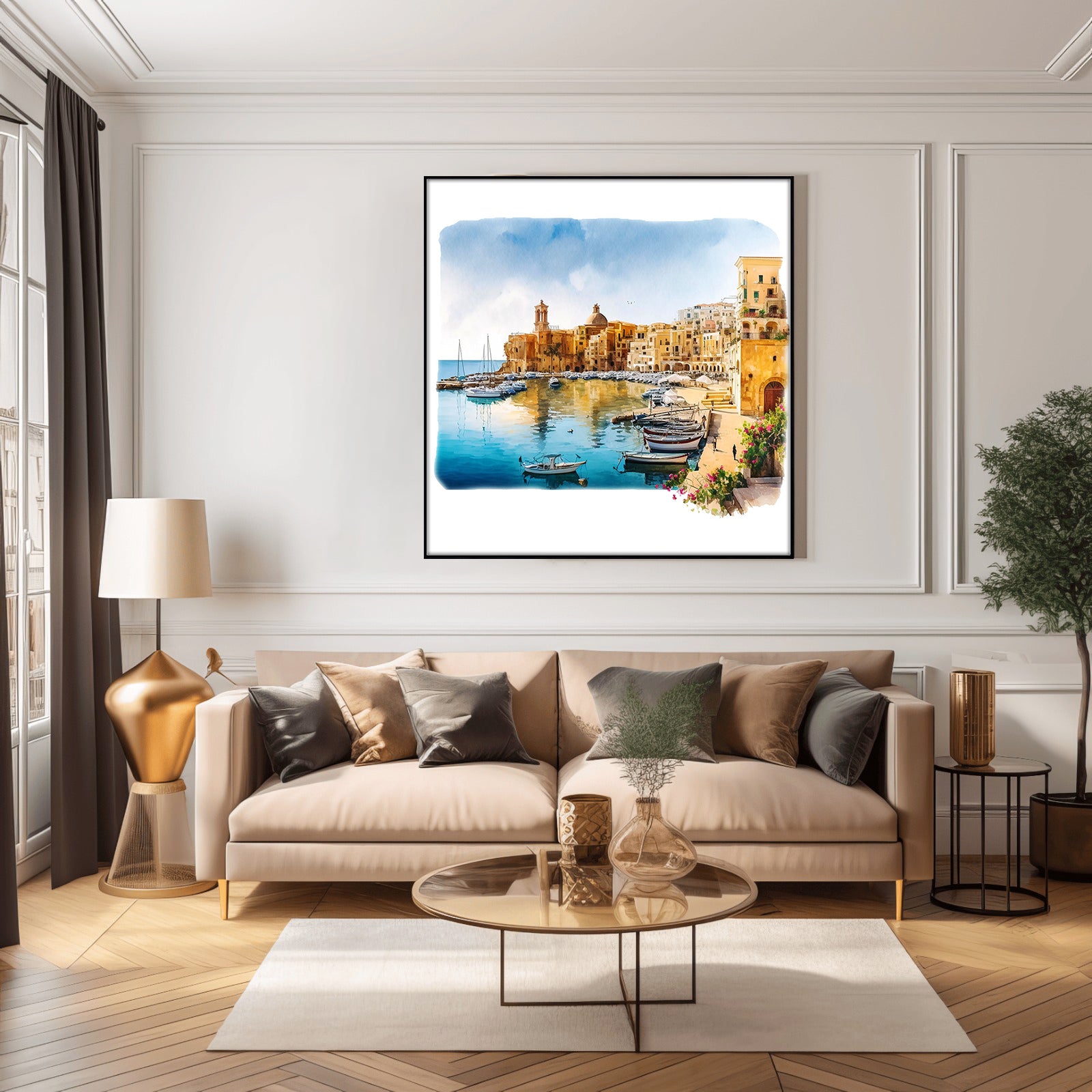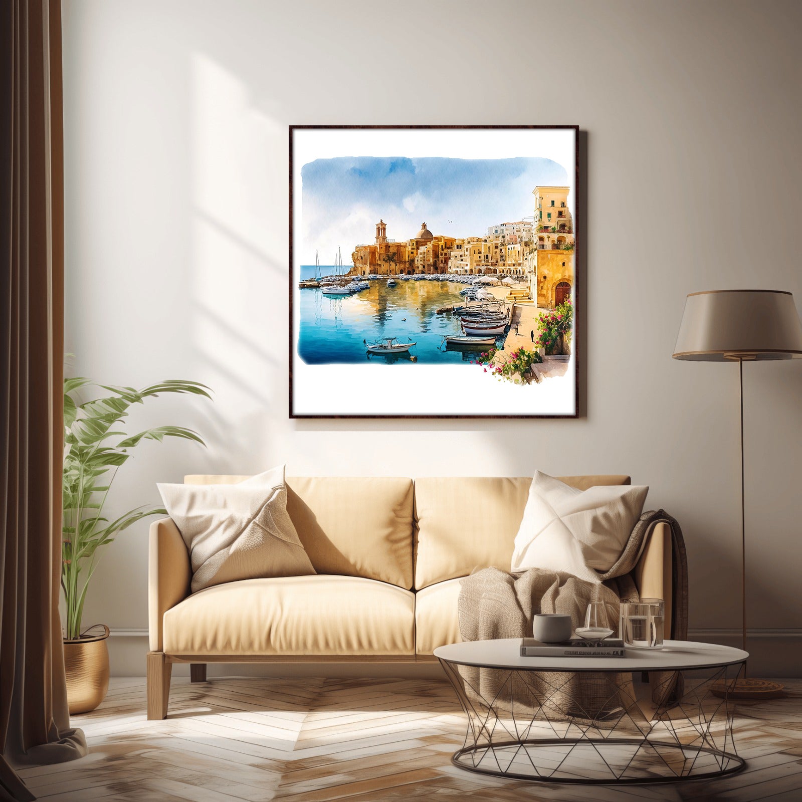 Bring the beauty of old seaside village into your home with this water colour print. Featuring a stunning view of the quaint community, it will be like having a piece of history to admire.