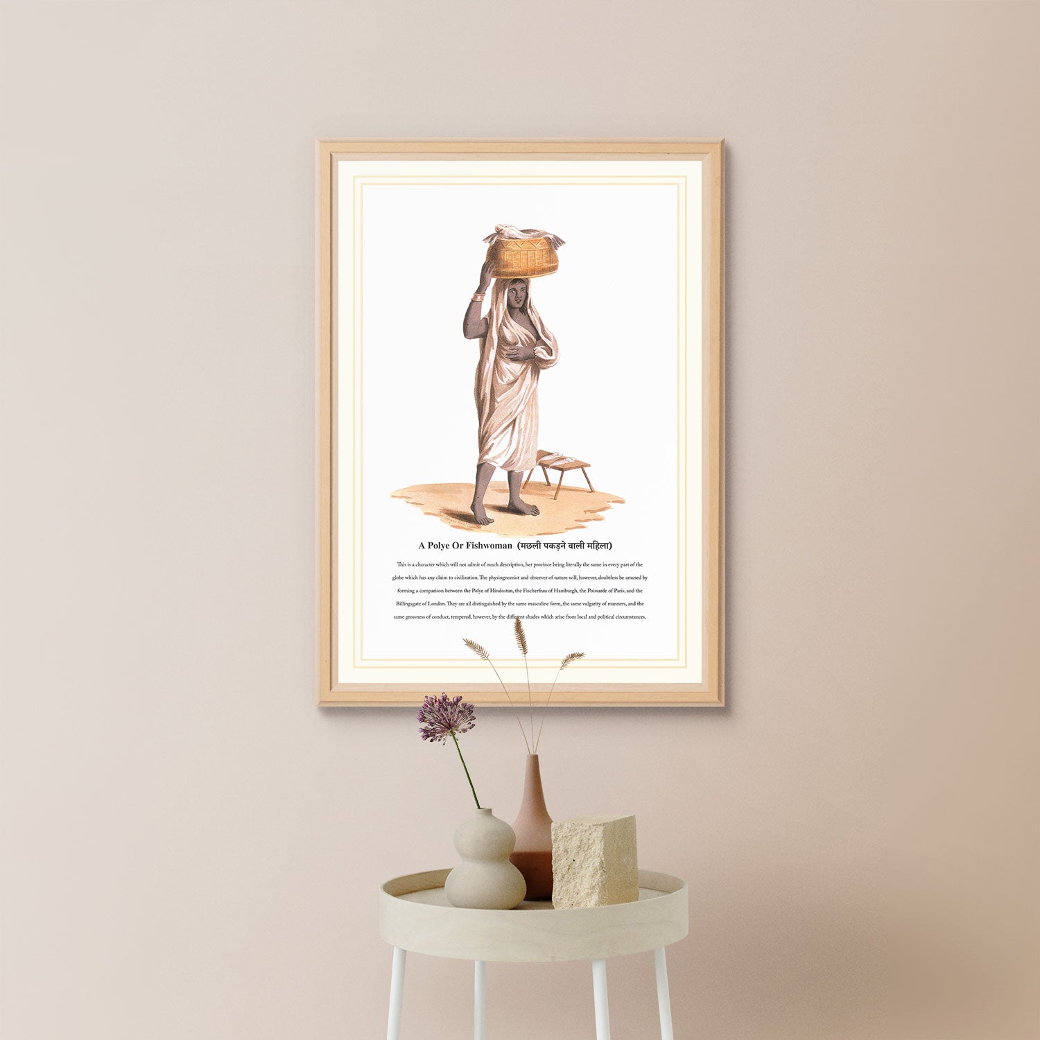 Discover the magnificence of A Polye Or Fishwoman (मछली पकड़ने वाली महिला)" Handmade Painting. A meticulous reproduction of the painting by the renowned artist "Franz Balthazar Solvyns"1798 and 1799. This captivating artwork, designed to adorn home walls, is meticulously crafted on premium Fine Art paper.