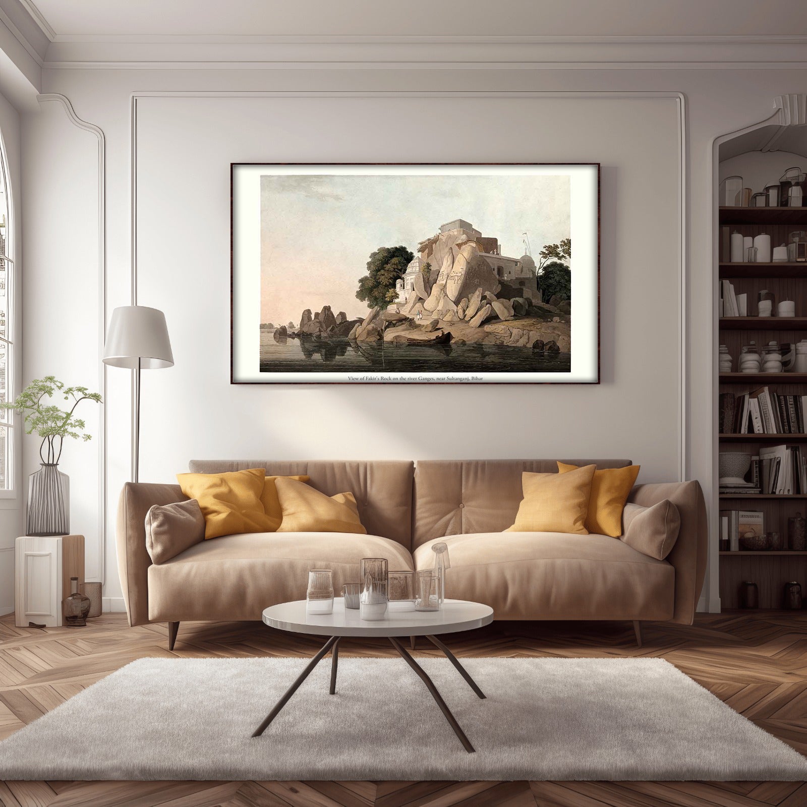 Learn about the cultural significance and beauty of the Ganges River in Bihar with Fakir's Rock Print. Immerse yourself in the stunning views of Sultanganj while admiring the intricately detailed design. Perfect for any art lover seeking to add a unique and meaningful piece to their collection.