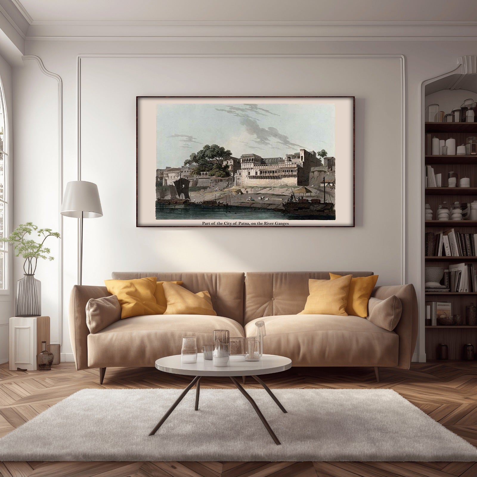 The beauty of Patna with this stunning print of the city seen from the Ganges River in Bihar. With crisp, detailed imagery, you can bring the vibrant atmosphere of Patna into your home. Perfect for anyone seeking to add a touch of culture to their space.
