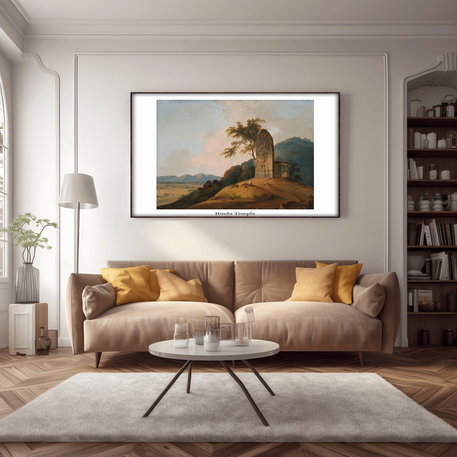 The beauty and history of ancient Hindu architecture with our Ra A Ruined Hindu Temple On A Rocky Outcrop Overlooking Print. Featuring a detailed depiction of a ruined temple atop a rocky outcrop, this print captures the majestic and mystical aura of this sacred site. Perfect for art lovers and history enthusiasts alike.