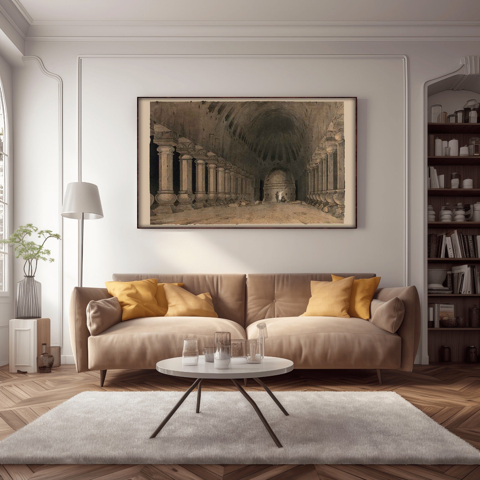 Experience the tranquility of a Buddhist temple with this stunning print of the interior featuring a stupa on the island of Salse. Immerse yourself in the peaceful atmosphere and admire the intricate details captured in this high-quality print. Perfect for adding a touch of spirituality to your home or office.