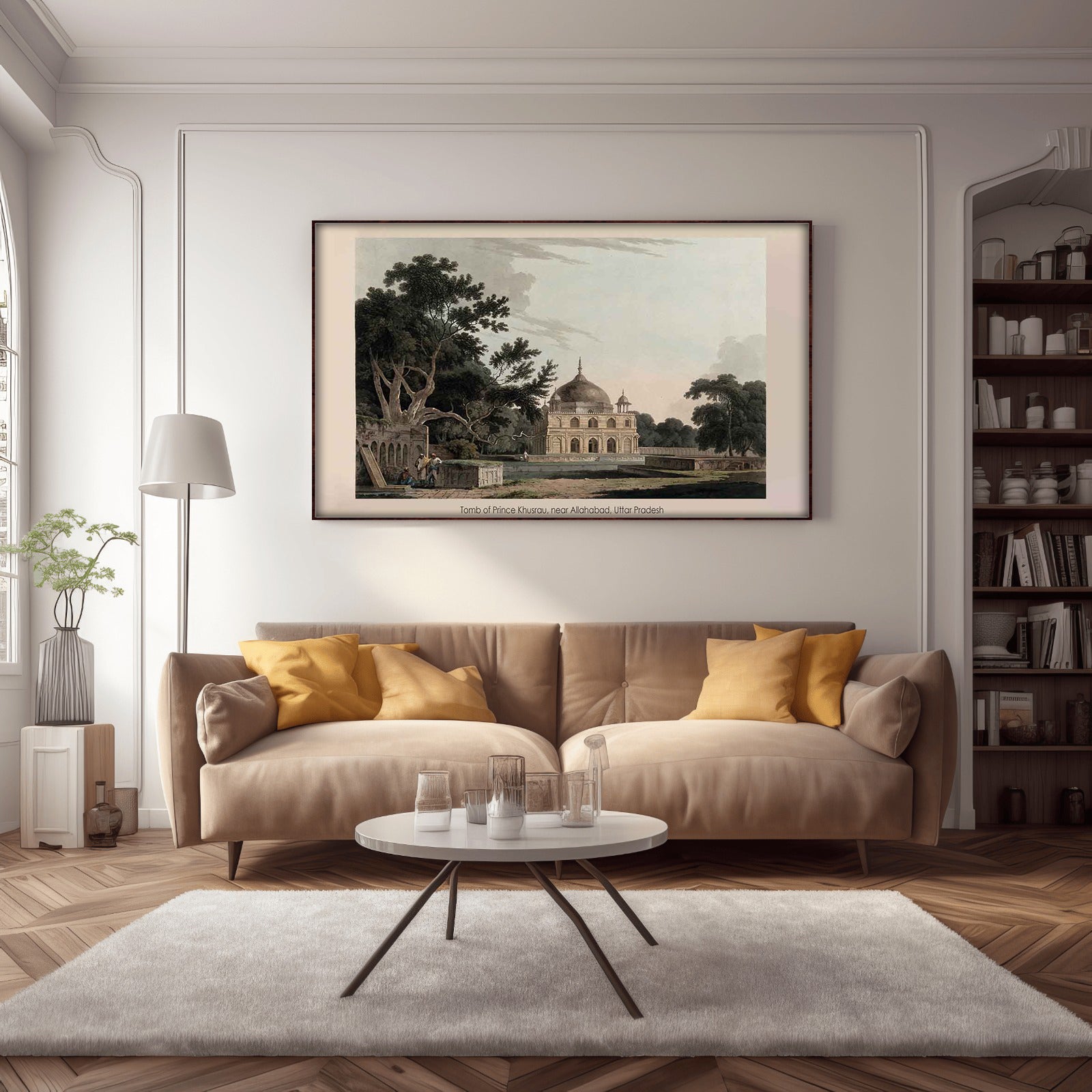 Visit the historic Tomb of Prince Khusrau in Allahabad, Uttar Pradesh with this print. Explore this architectural marvel, built in the 16th century. Perfect for history enthusiasts and lovers of art and culture.