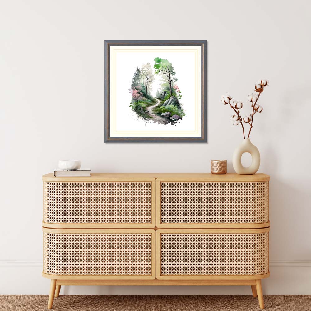 This forest trail print is sure to bring nature closer to home. Featuring vibrant water colours, this print will create a gentle and tranquil atmosphere in your living space. The beautiful greenery is sure to provide a calming presence, and bring a natural elegance to your home.
