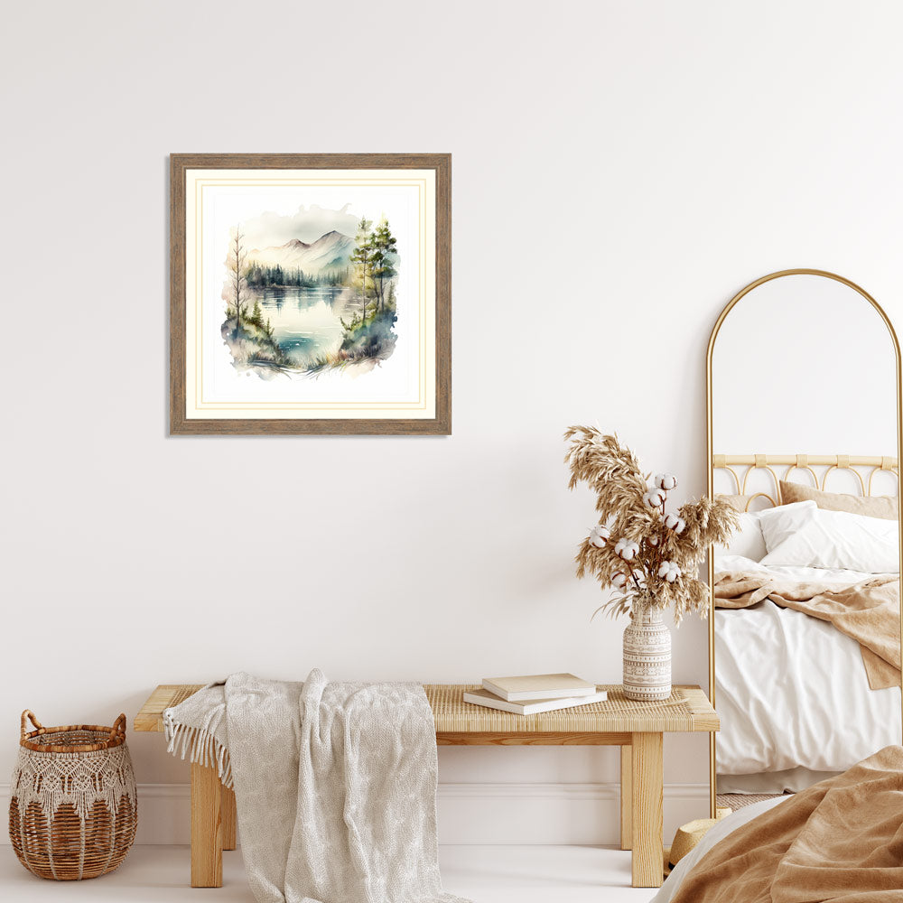 Capture the beauty of nature with our mountains and river in front water colour print. The vibrant colour shades of the landscape create an awe-inspiring atmosphere perfect for a living area, bedroom, or office. Make a statement in any space and bring life to any wall.