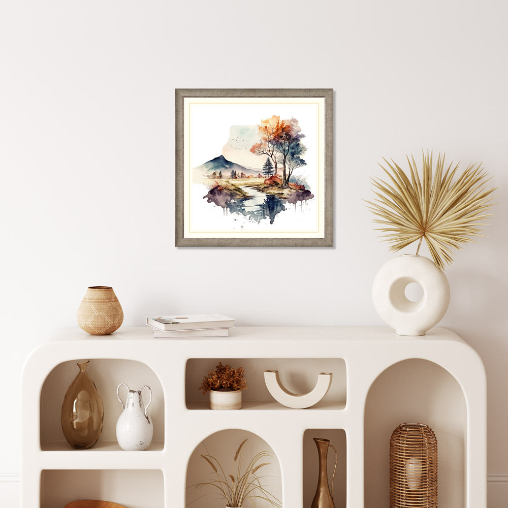 Capture the beauty of nature with our mountains and river in front water colour print. The vibrant colour shades of the landscape create an awe-inspiring atmosphere perfect for a living area, bedroom, or office. Make a statement in any space and bring life to any wall.