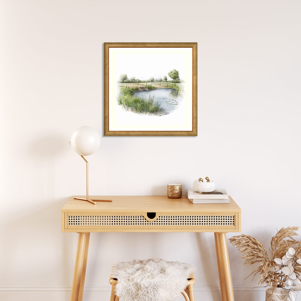 Pond Filled with Green Grassy Bank