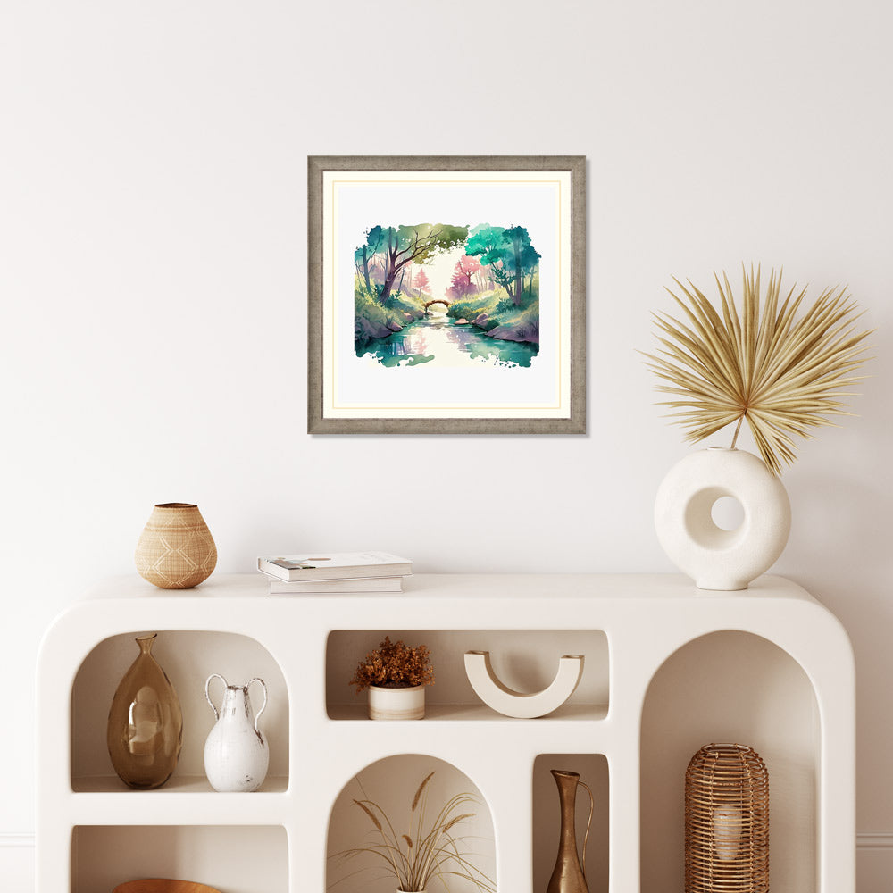 Experience the tranquility of the outdoors with this beautiful water colour print of a riverside in a forest. Printed with vivid and high-quality detail, this print will bring a touch of the natural world to any room. Perfect for nature lovers and art connoisseurs alike.
