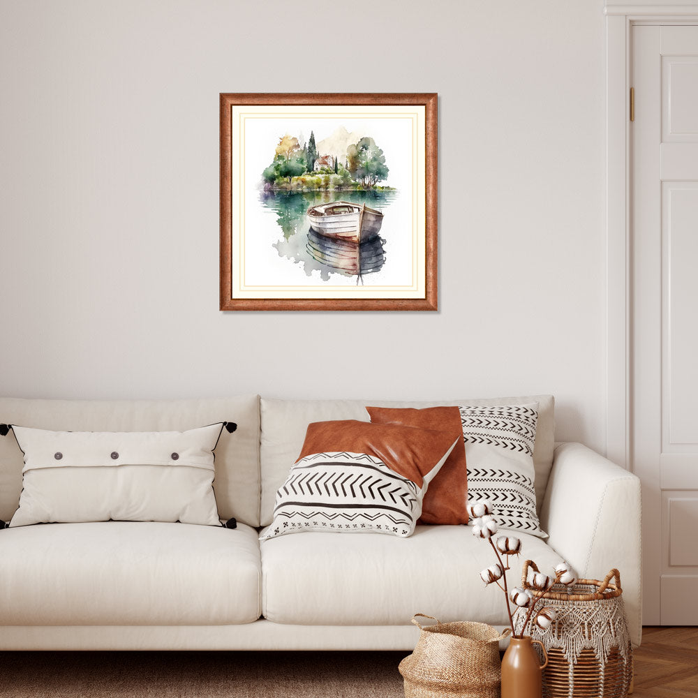 The boat in river is an eye-catching wall art print that is sure to make a statement in any space. Printed on fine art paper with vivid water colours, this print is sure to bring life to your walls. Hang it on its own or complete the look with other prints and bring the beauty of nature into your home.