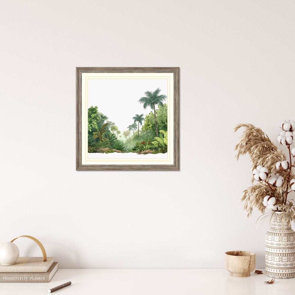 Our tropical forest print is carefully crafted with rich water colour shades, bringing a lush and vibrant atmosphere to any space. Its bright and warm colours make it an outstanding addition to any room. Transform your home into a lush paradise with tropical forest.