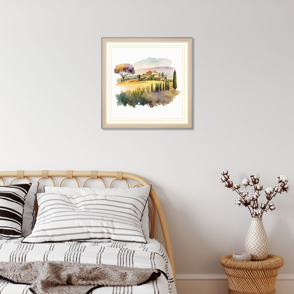 This high-quality water colour print of the village in the region of tuscany is a great addition to any wall. The charming village is captured in vibrant colours, bringing life and beauty to any room. A perfect accent to any home or office.