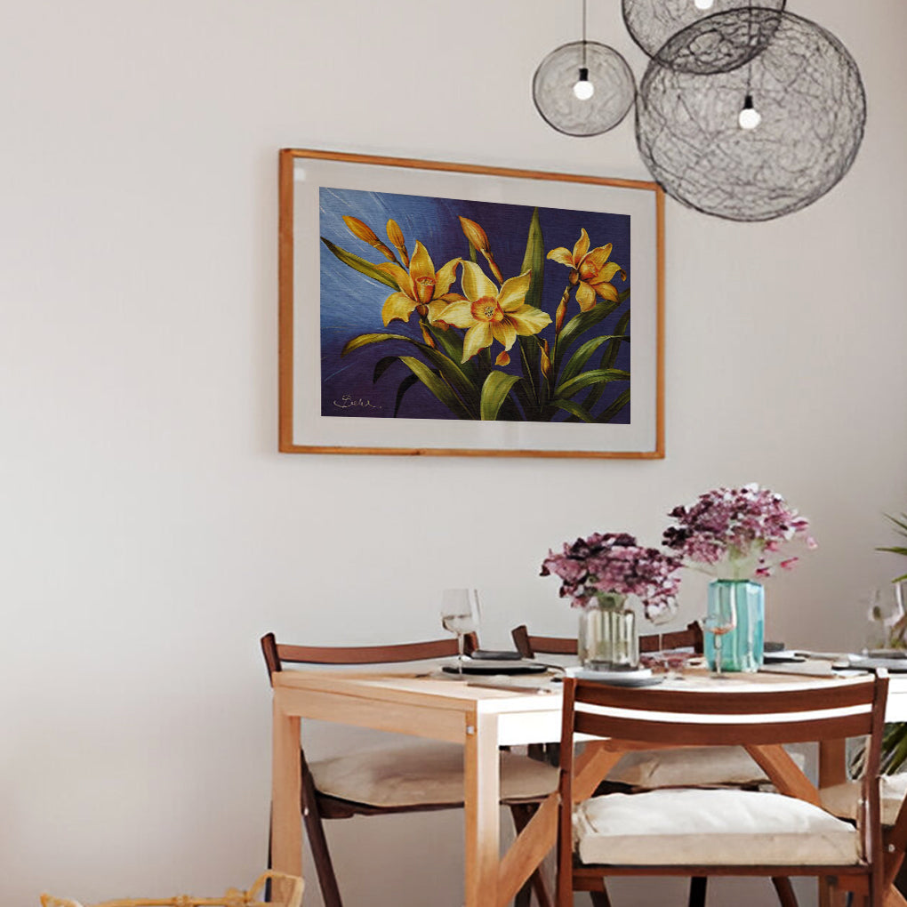 Discover the magnificence of "Daffodils" Handmade Oil Painting. A meticulous reproduction of the painting by the renowned artist "Grafitec". This captivating artwork, designed to adorn home walls, is meticulously crafted on premium canvas paper, using the finest oil paints available.