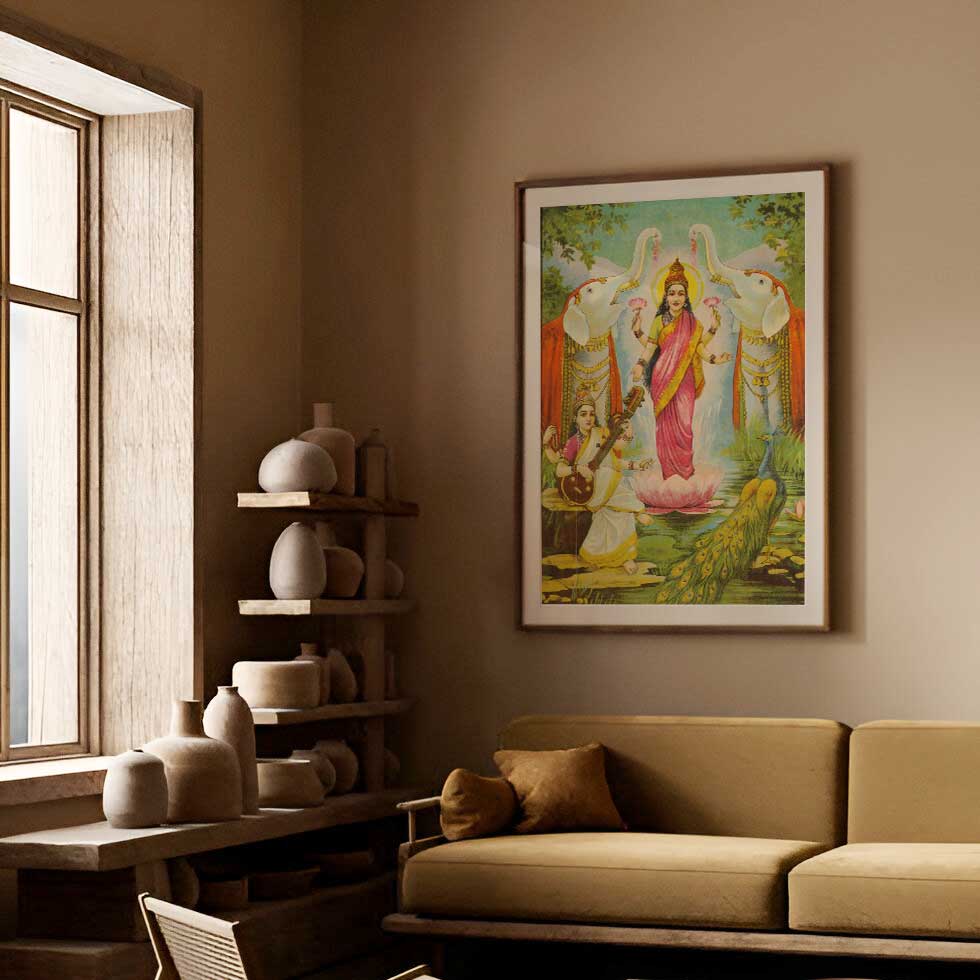Elevate your space with the Lakshmi Saraswati Sanyog wall art, a sophisticated representation of divine prosperity and wisdom. This meticulously crafted piece harmoniously combines the energies of Goddess Lakshmi and Goddess Saraswati, creating a balanced atmosphere for both material abundance and intellectual growth. Perfect for homes, offices, or meditation spaces seeking to manifest wealth alongside knowledge.