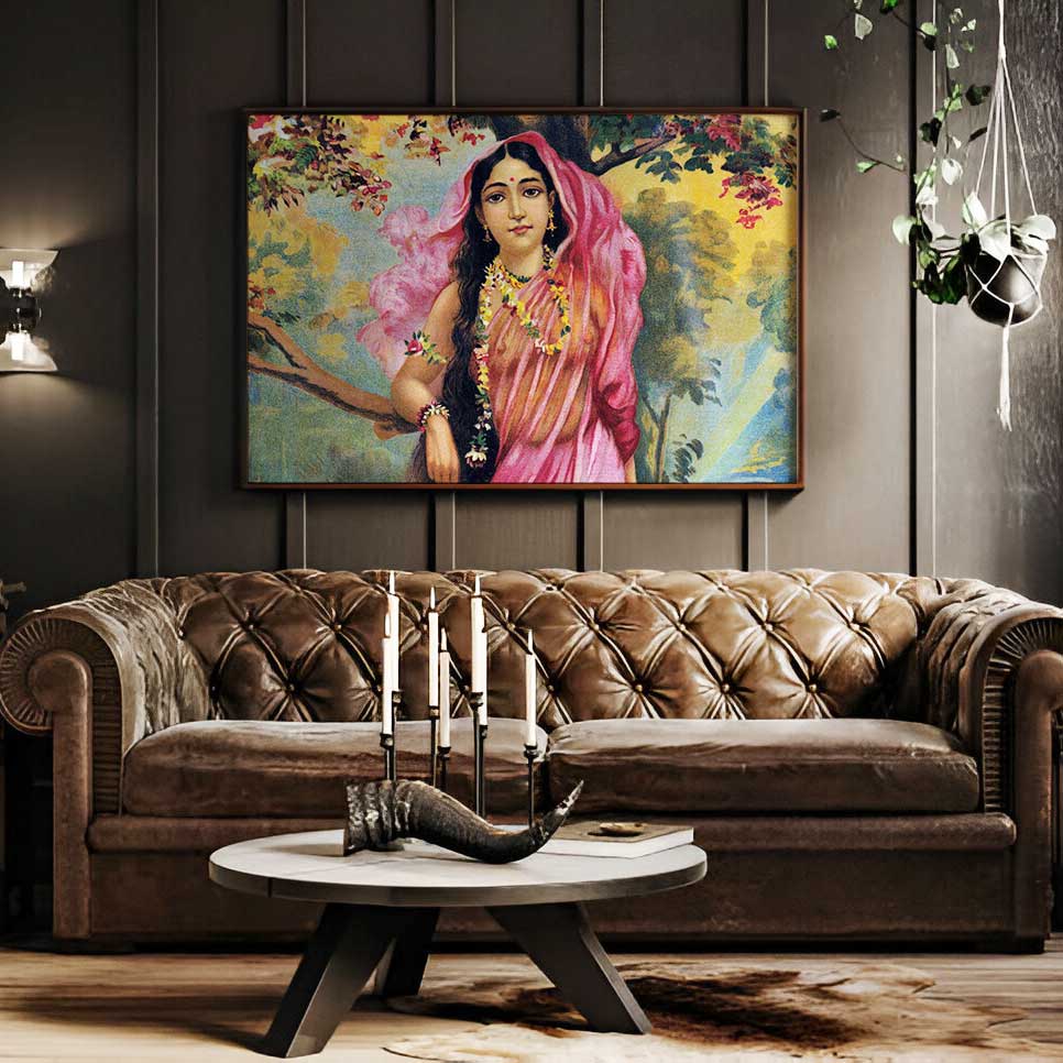 Immerse your space in the timeless elegance of Raja Ravi Varma's masterpieces. These meticulously reproduced prints capture the legendary Indian artist's distinctive fusion of European academic techniques with traditional Indian themes. Each piece showcases Varma's remarkable ability to portray mythological narratives and cultural scenes with photographic realism, vibrant colors, and emotional depth. An essential addition for discerning collectors and connoisseurs of classical Indian art.