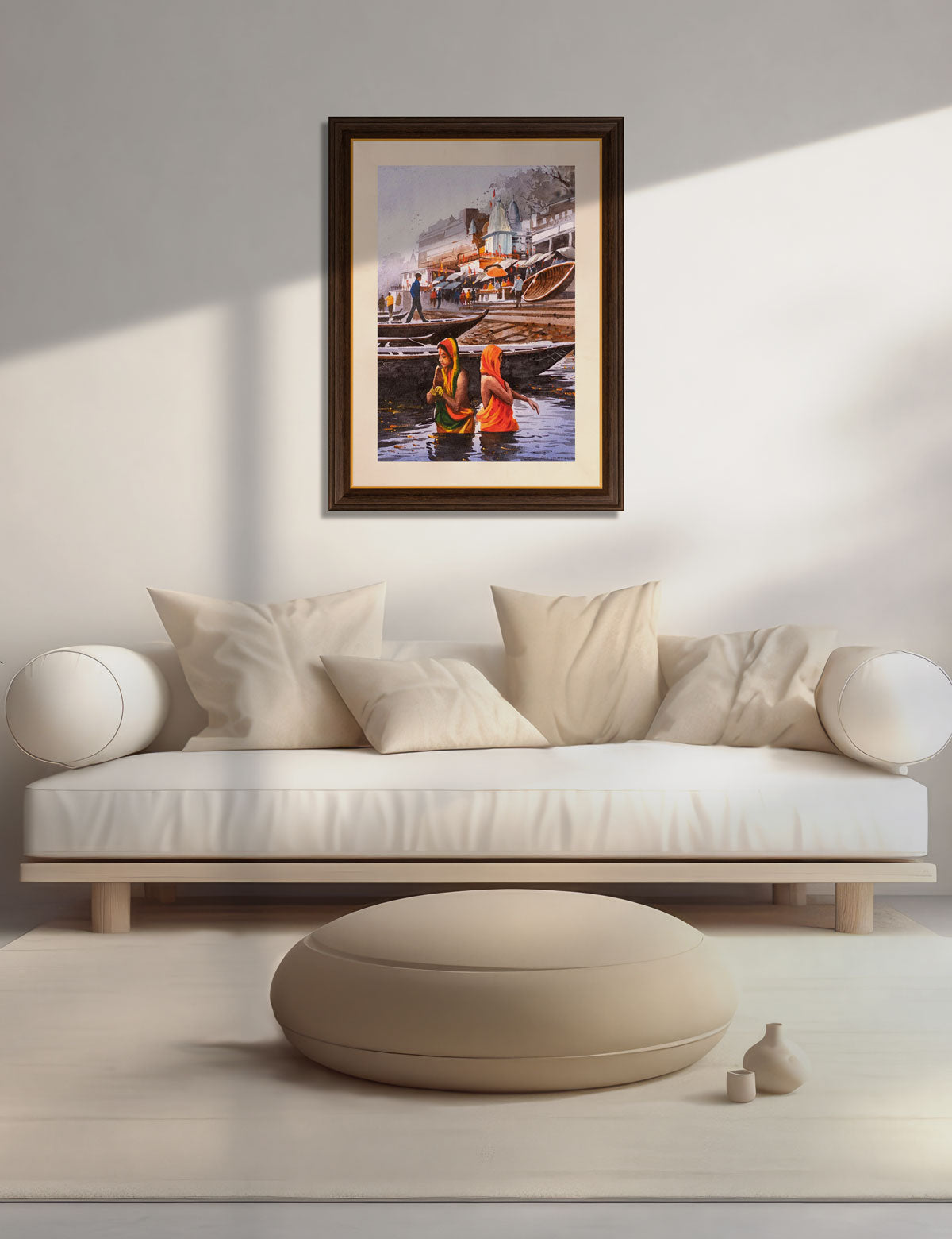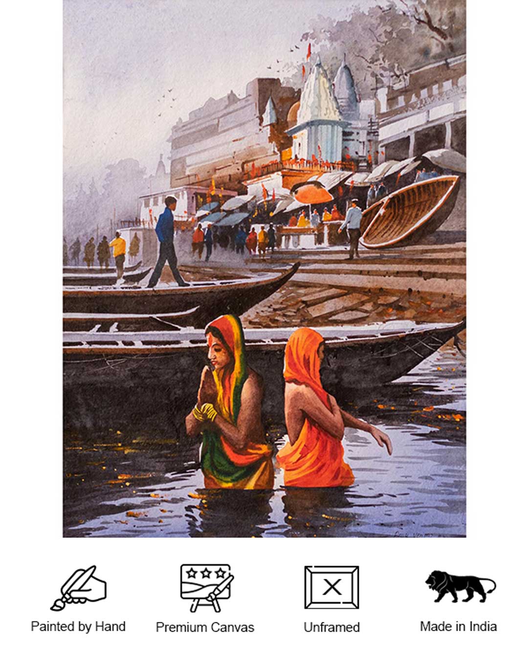 Holy Bath at Banaras Ghat - Water Colour Painting