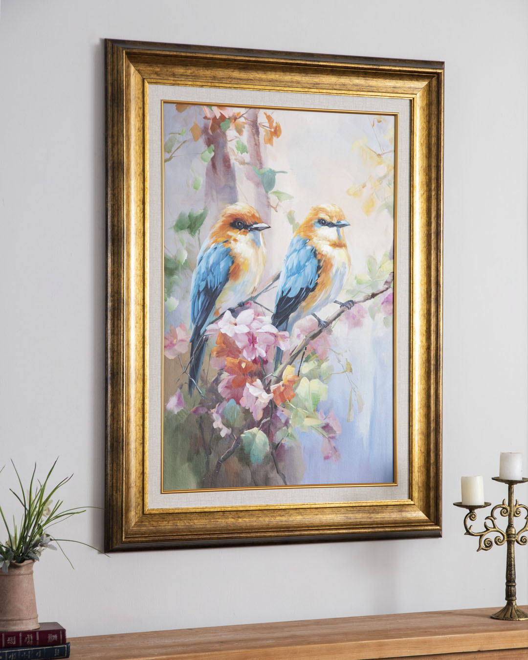'Birds on Branches' Handmade Oil Painting - 34x46 Inch