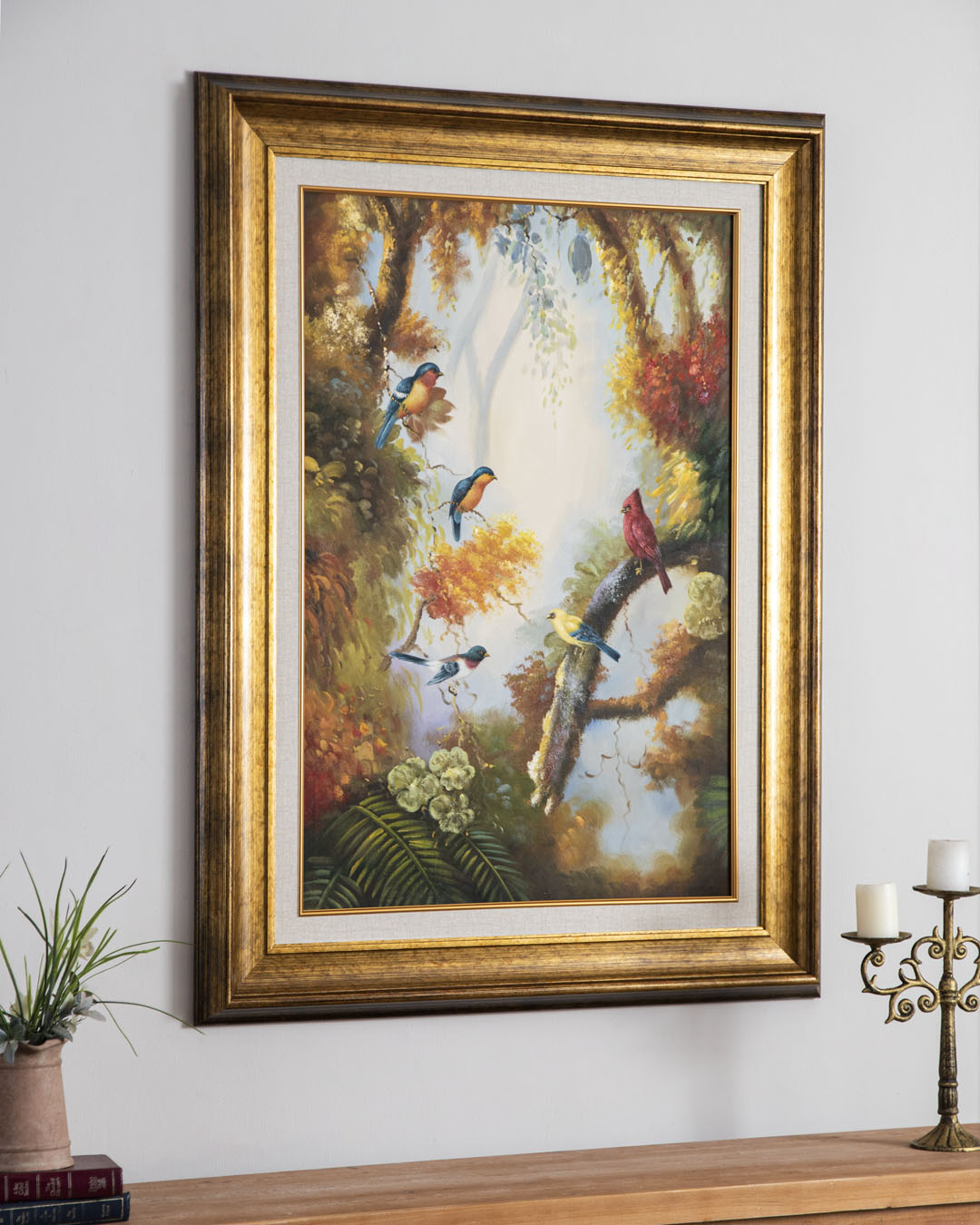 'Birds on the Tree' Handmade Oil Painting - 34x46 Inch