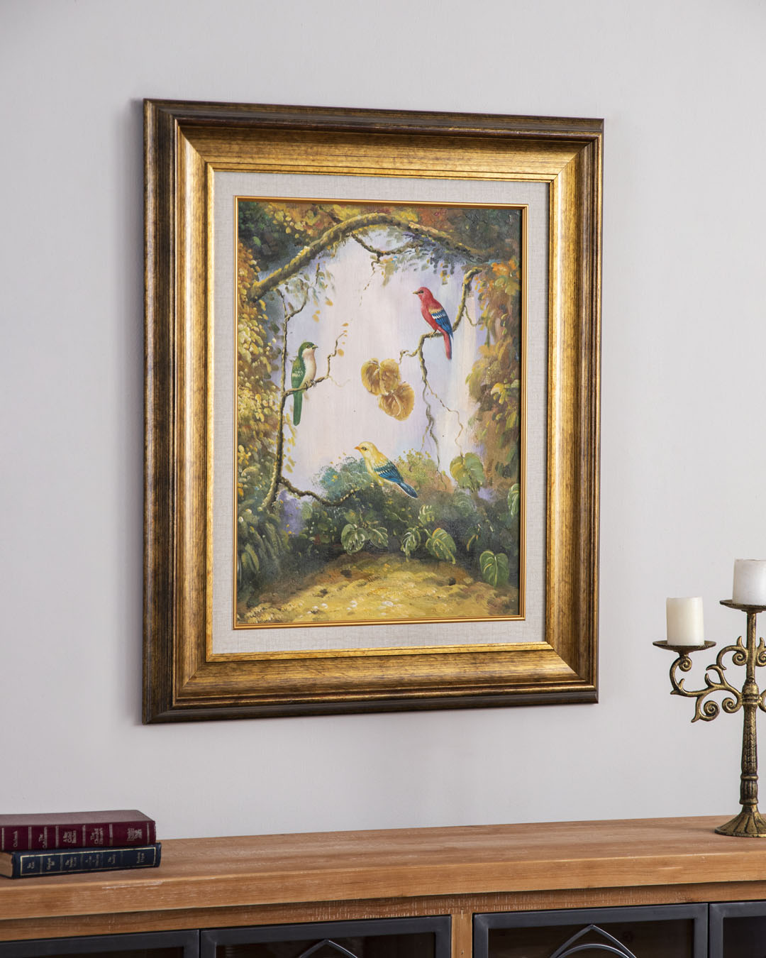 'Birds Sitting on Branches' Handmade Oil Painting - 28x32 Inch