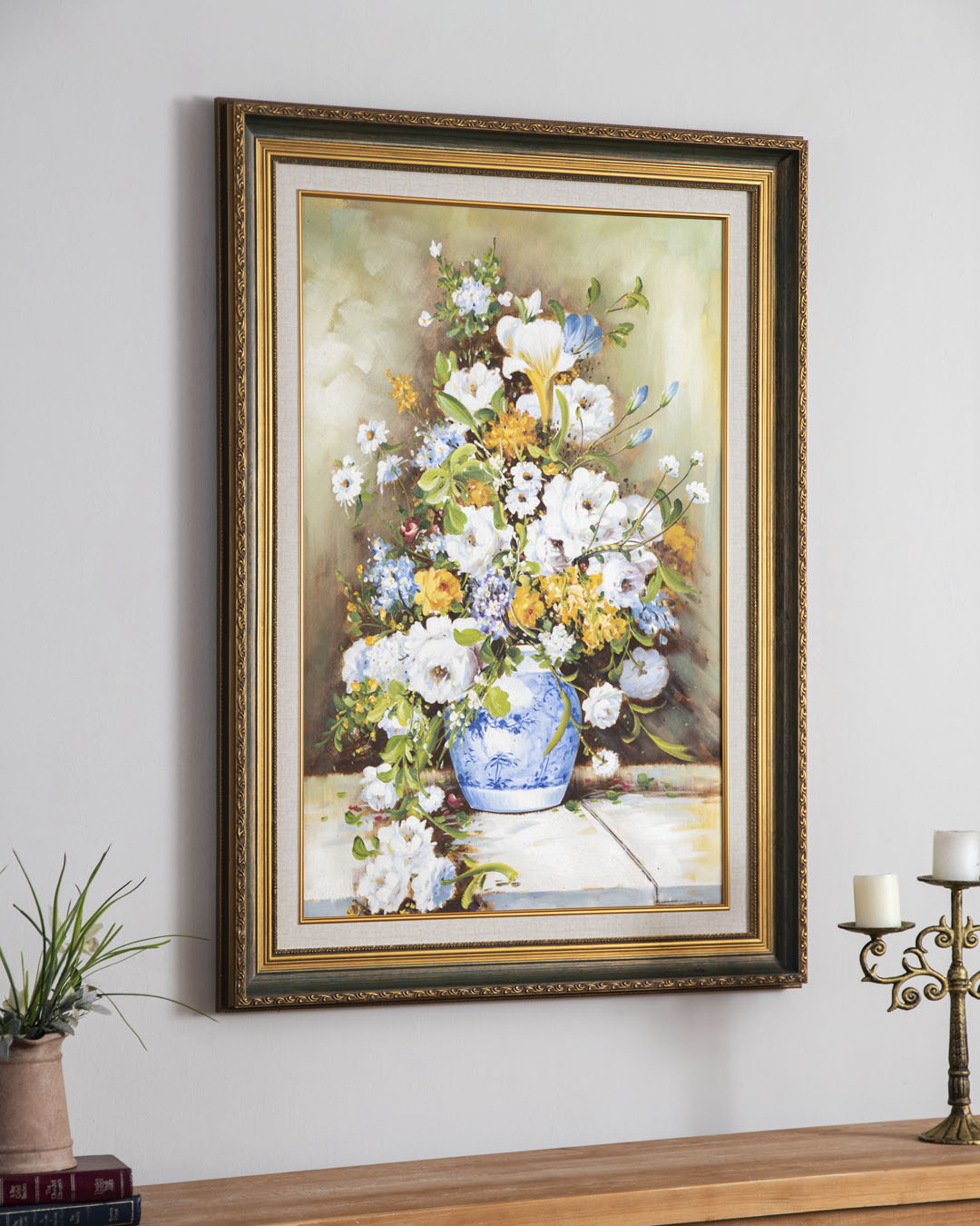 'Blue Vase' Handmade Oil Painting - 34x46 Inch