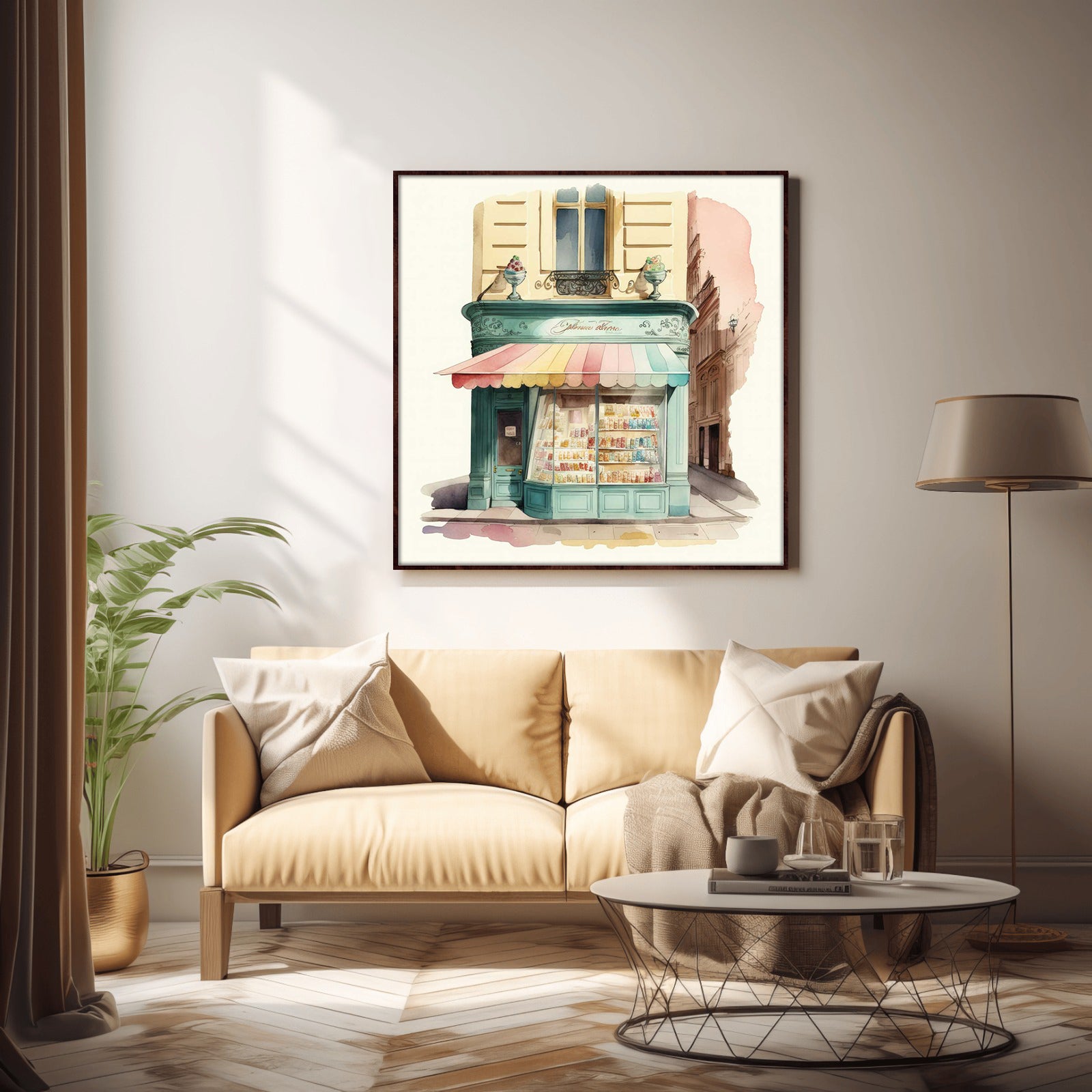 This feminine bakery shop is the perfect addition to any kitchen. Featuring a water colour print, this piece displays a unique and stylish look that stands out. Perfect for expressing your unique personality and style.