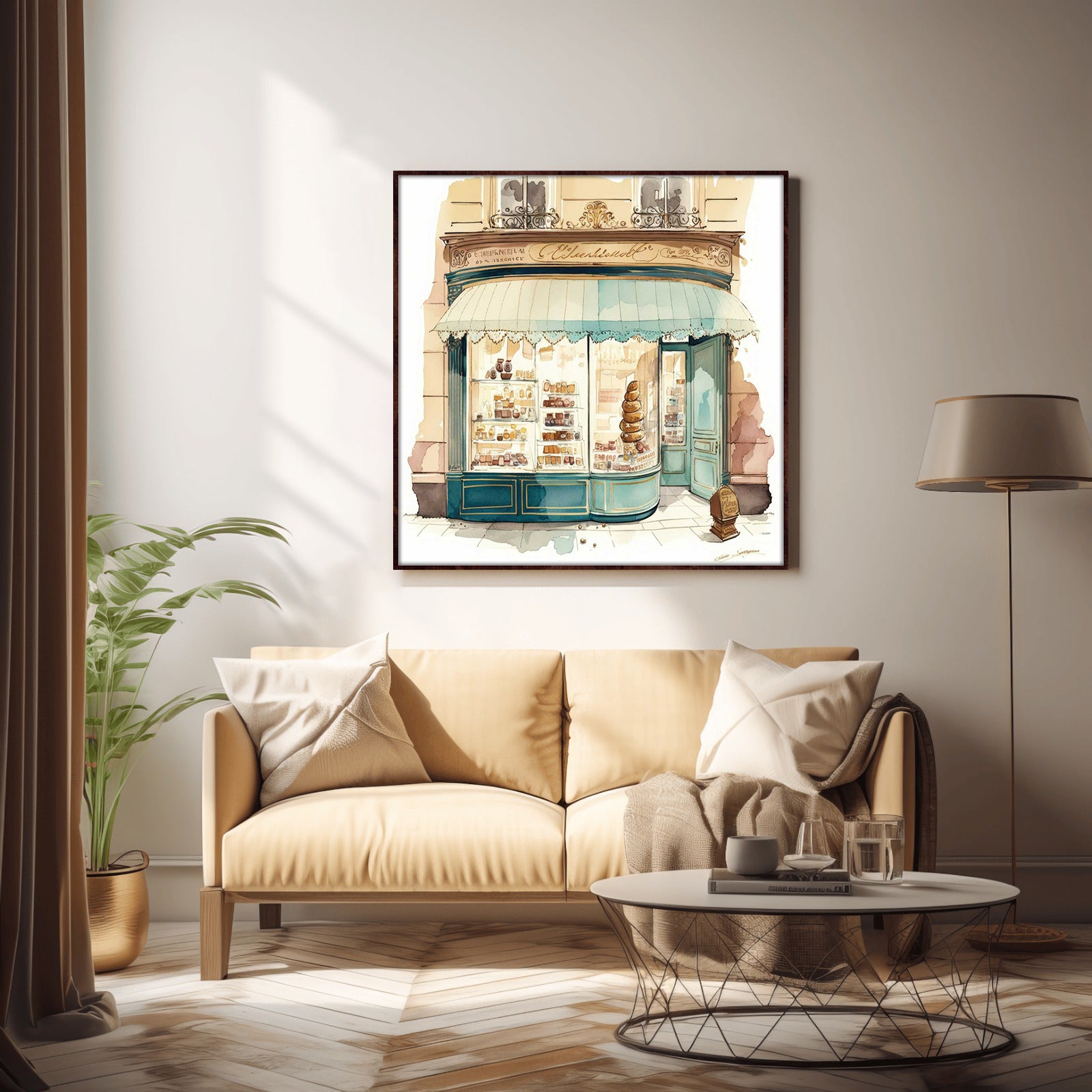 This feminine bakery shop is the perfect addition to any kitchen. Featuring a water colour print, this piece displays a unique and stylish look that stands out. Perfect for expressing your unique personality and style.