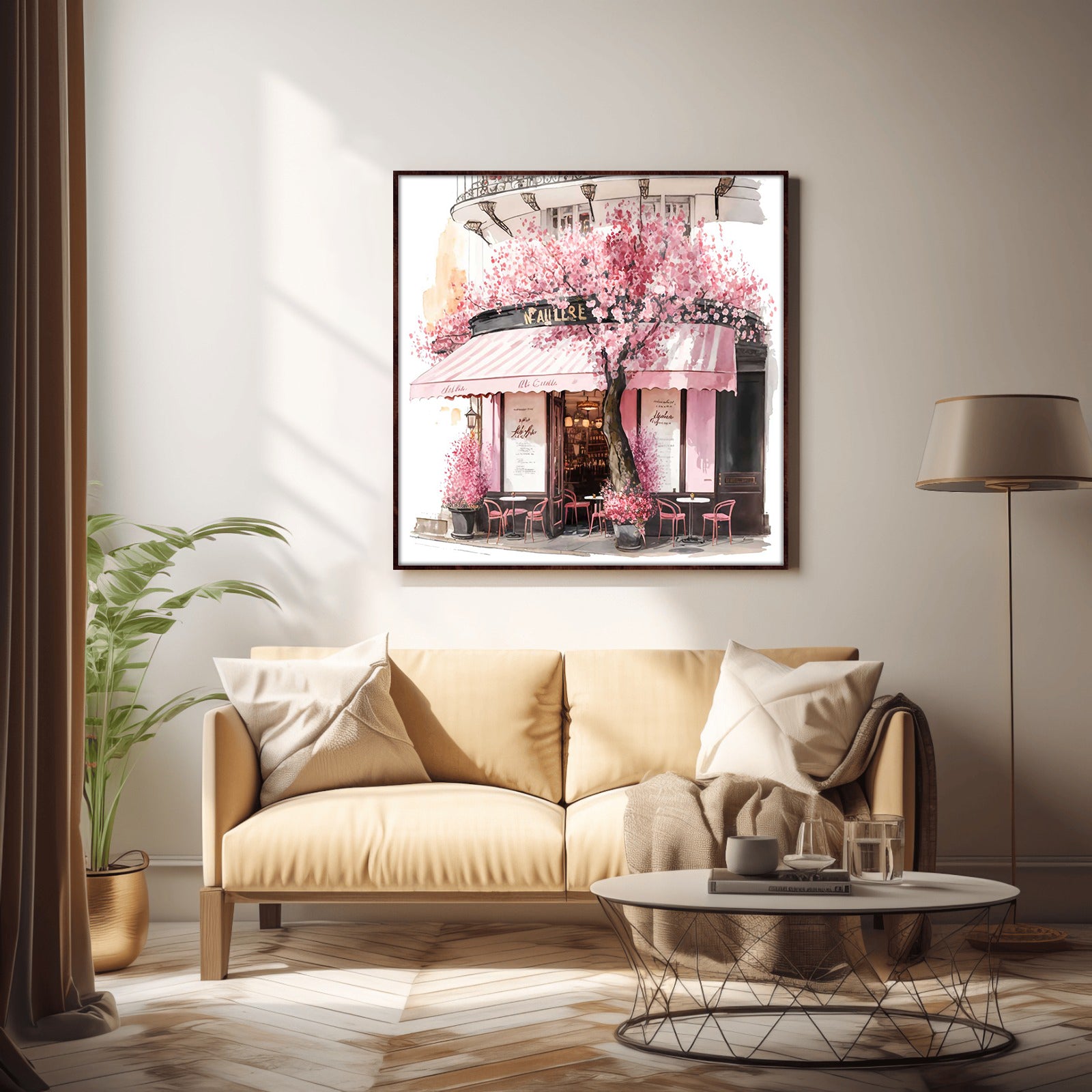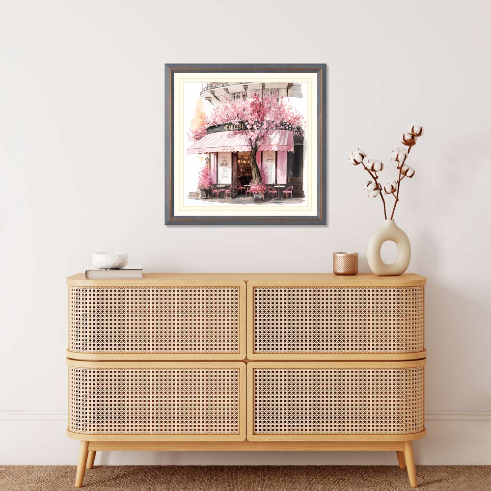 This stunning water colour print of a coffee shop surrounded by beautiful blooms is a must-have for any home. With its vibrant colours and intricate details, this piece is sure to bring a sense of life and style to any room.