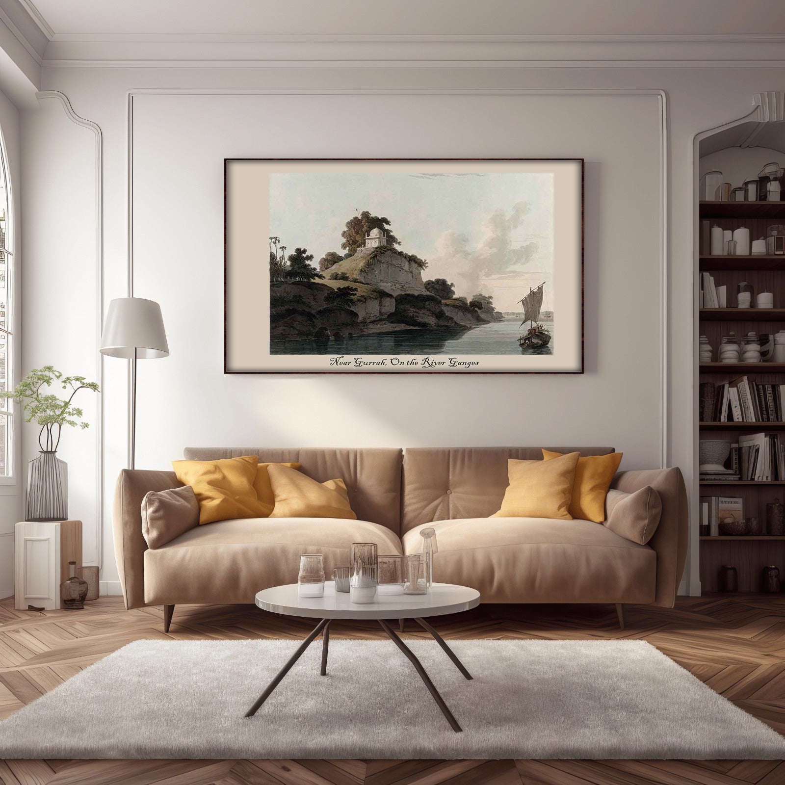 As a Hindu temple near the sacred River Ganges, this print captures the spiritual essence of Kara, Uttar Pradesh. With its vibrant colors and intricate detailing, it brings a piece of Indian culture to your home. Perfect for those seeking a peaceful and cultural touch in their surroundings.