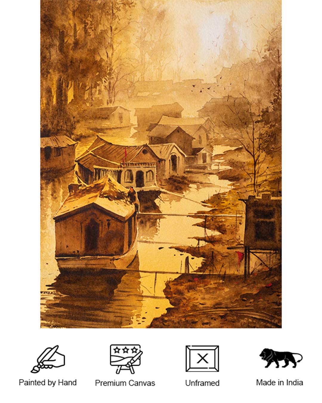 Kashmir Landscape in Monochrome - Water Colour Painting
