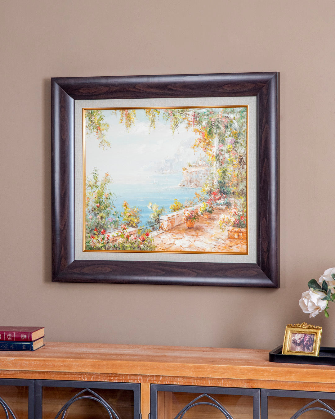'Mediterranean View' Handmade Oil Painting - 28x32 Inch