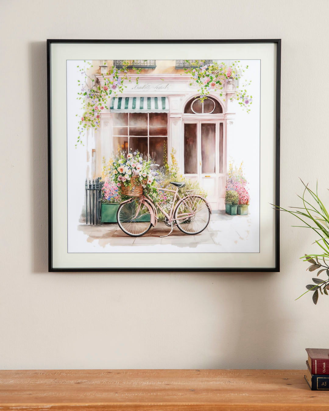 Introducing our Summer Cafe With Floral Bicycle! Enjoy the warm weather while sipping on your favorite beverage at our charming outdoor cafe. Surrounded by beautiful flowers and a classic bicycle, it's the perfect spot to relax and soak up some sun. Create lasting memories with friends and family at our Summer Cafe.