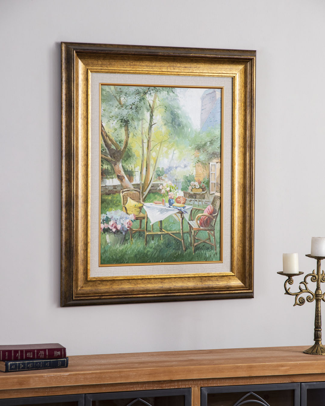 'Breadfast at the Garden' Handmade Oil Painting - 28x32 Inch