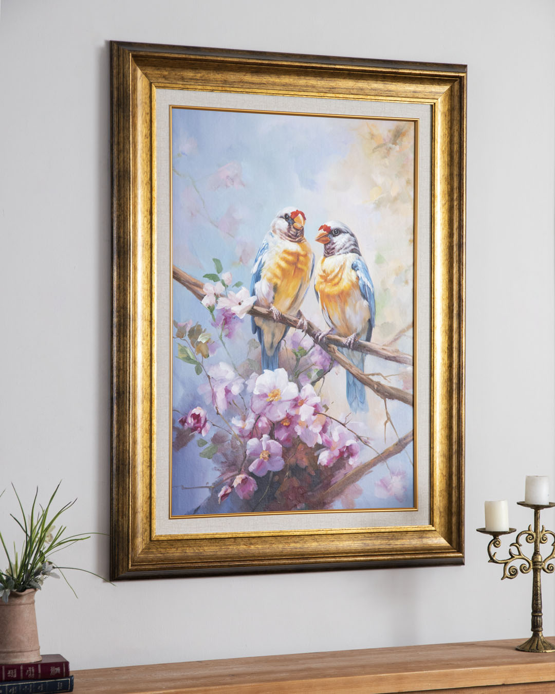 'Parrots' Handmade Oil Painting - 34x46 Inch