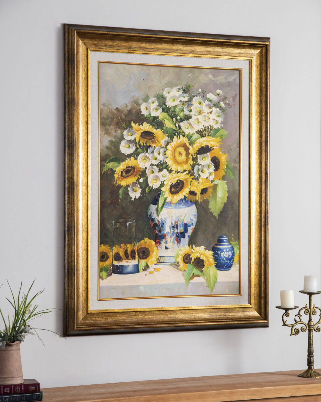 'Sunflower Vase' Handmade Oil Painting - 34x46 Inch