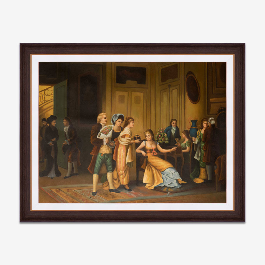 Discover the magnificence of "A Gift For The Chatelaine" Handmade Oil Painting. Created by the renowned artist "Adrien De Boucherville"(1912). This captivating artwork, designed to adorn home walls, is meticulous reproductionly crafted on premium museum quality 9 ounce canvas, Using canvas with oil paints from Berlac Switzerland.