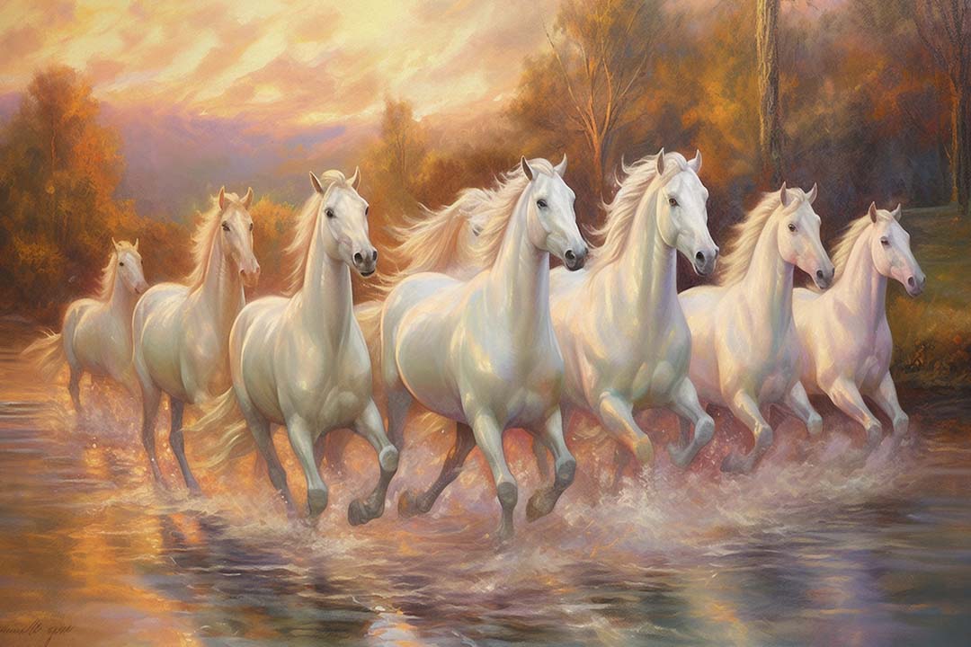 Elevate the energy of your home or workspace with this beautifully crafted 7 Running Horses Painting, inspired by the principles of Vastu Shastra. Known for symbolizing success, speed, and positive momentum, this artwork is more than just decor—it's a powerful tool to attract prosperity and growth.