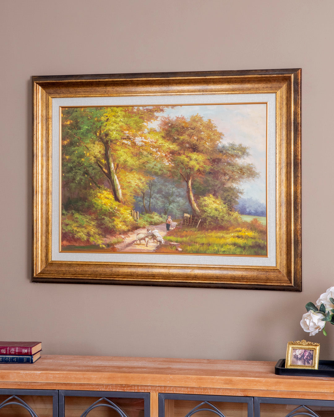'Woodland Landscape' Handmade Oil Painting - 34x46 Inch