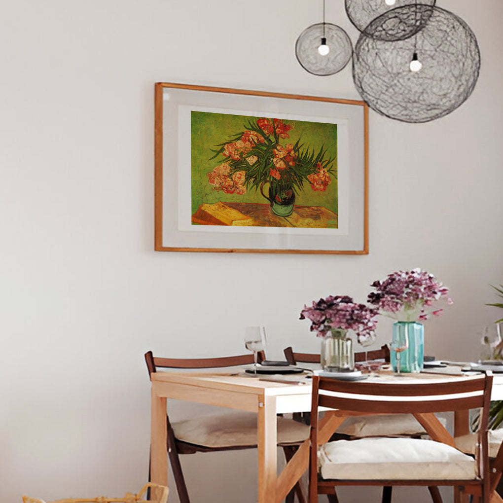 Discover the magnificence of "Vase With Oleanders And Books" Handmade Oil Painting. A meticulous reproduction of the painting by the renowned artist "Vincent Van Gogh". This captivating artwork, designed to adorn home walls, is meticulously crafted on premium canvas paper, using the finest oil paints available.