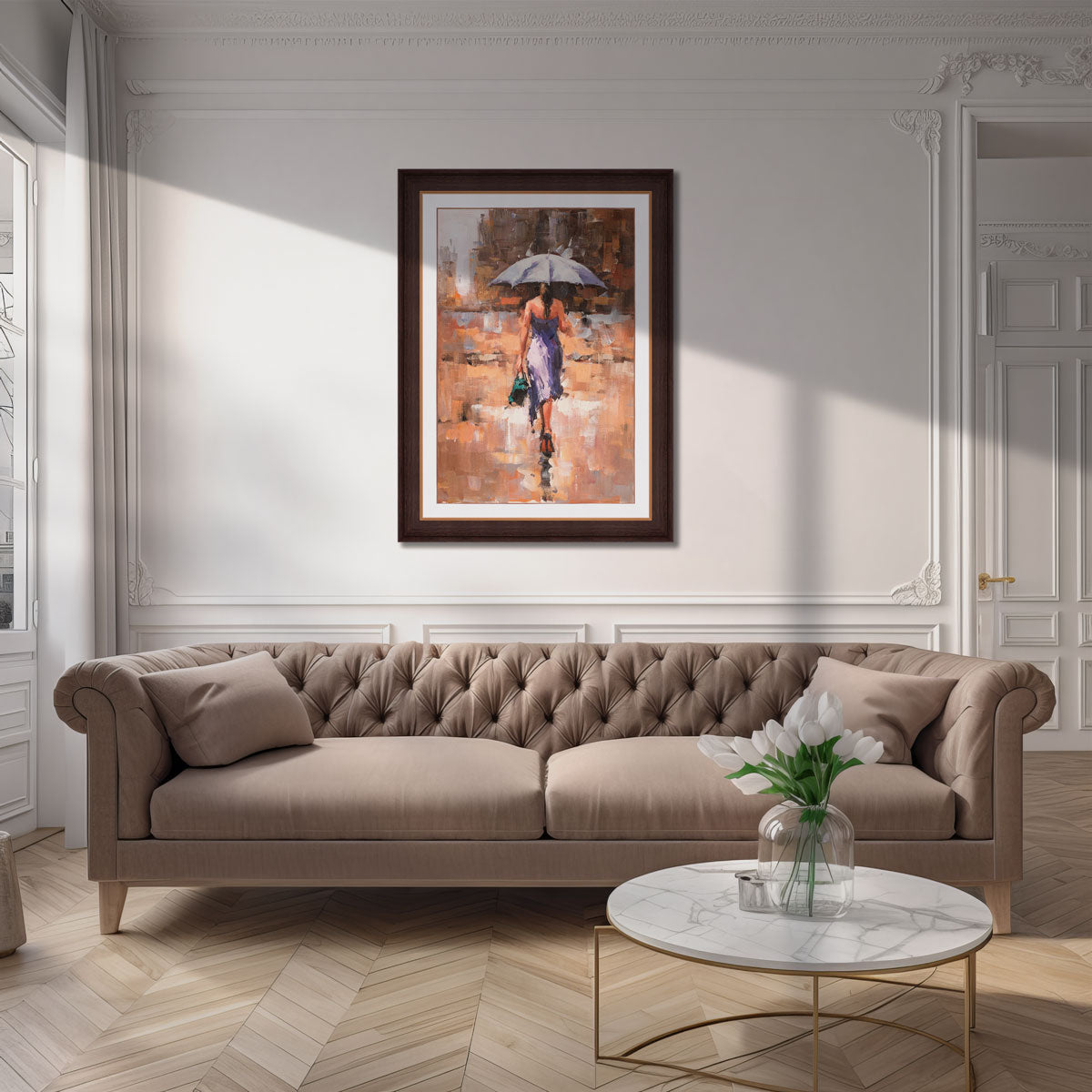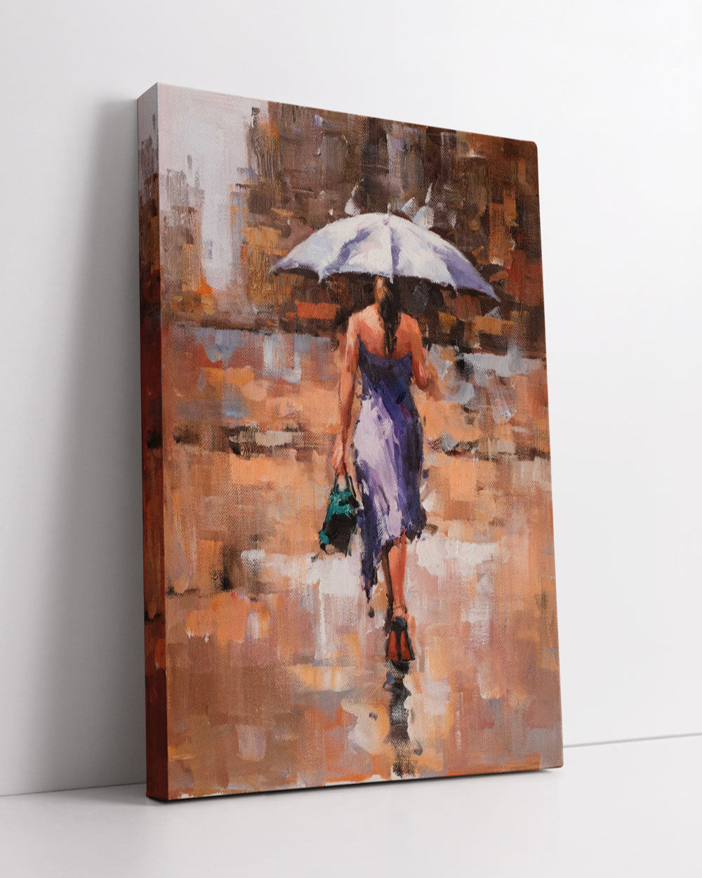 "Woman Walking In The Rain" Handmade Oil Painting 24"x 36"