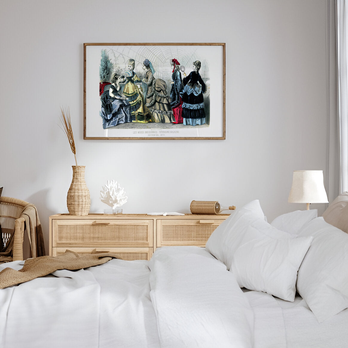 Indulge in the timeless elegance of French Fashion with this stunning print. Admire the intricate details and exquisite design that captures the essence of French style. Crafted with the finest materials, this print will add a touch of sophistication to any space. Elevate your decor with French Fashion.