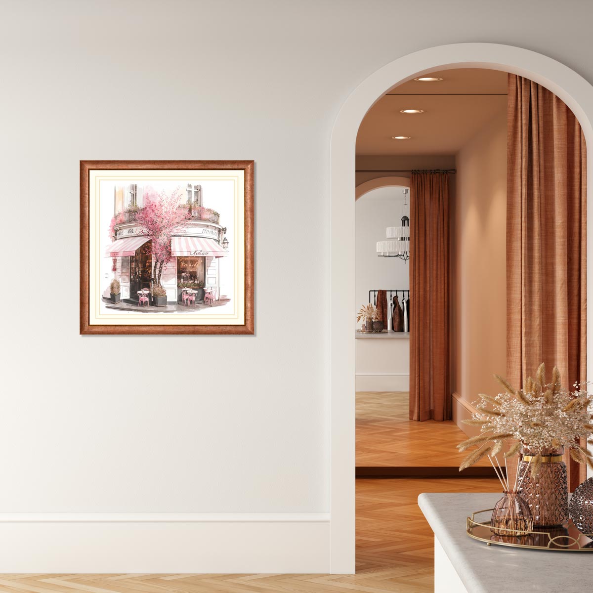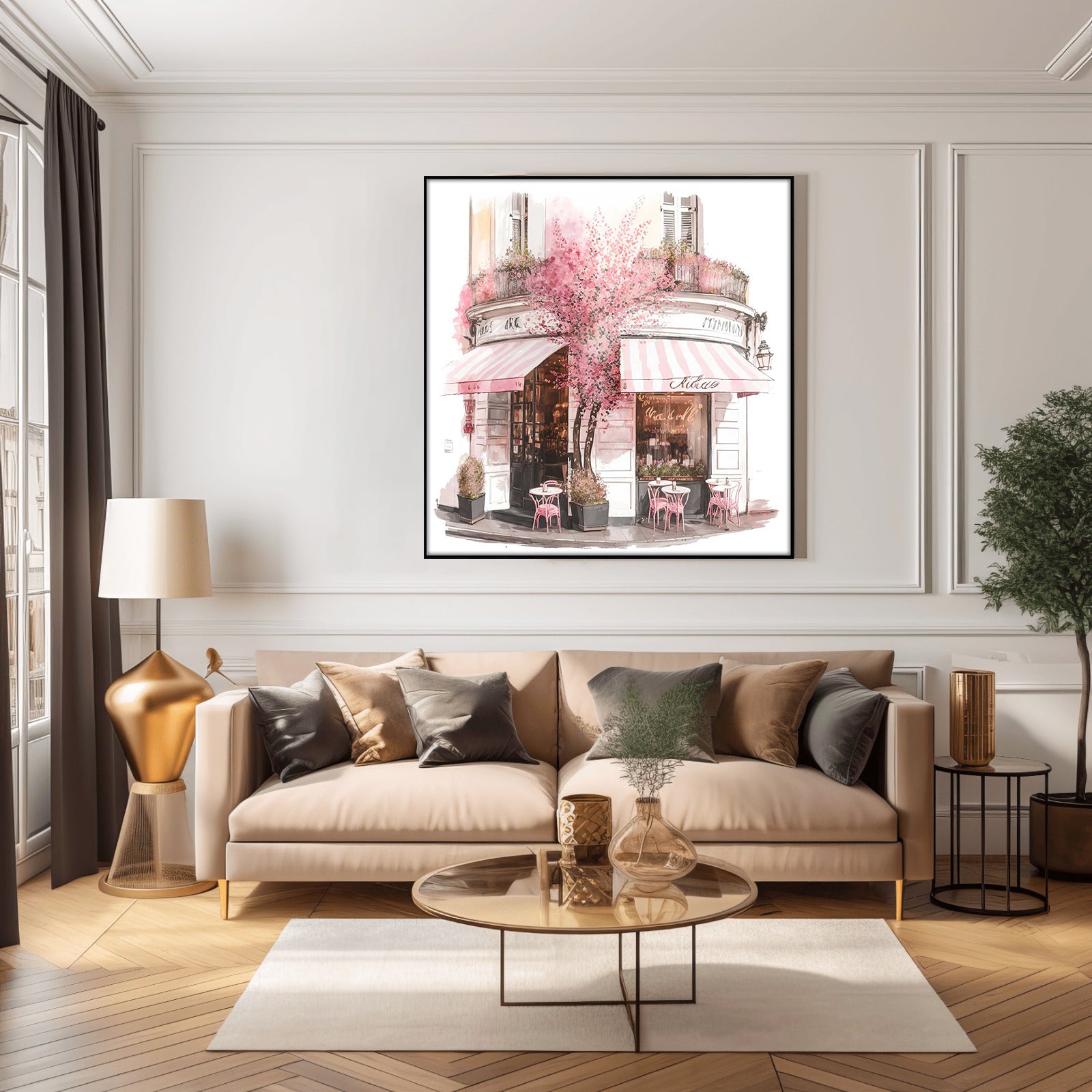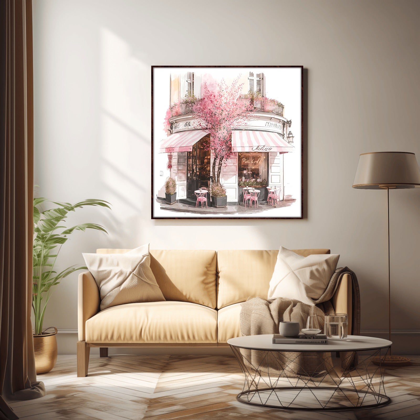 This stunning water colour print of a coffee shop surrounded by beautiful blooms is a must-have for any home. With its vibrant colours and intricate details, this piece is sure to bring a sense of life and style to any room.
