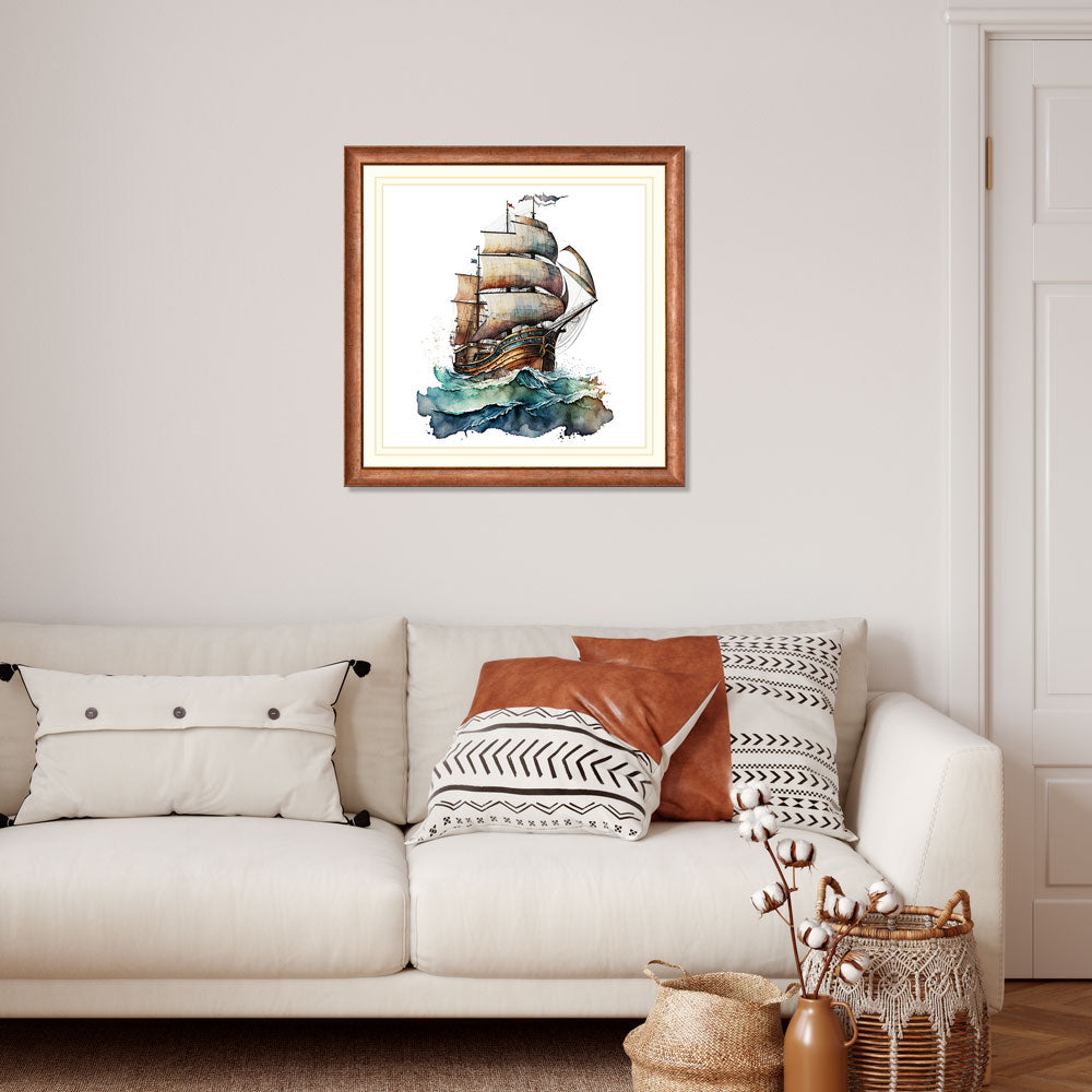 Thrilling voyage with the Watercolor Pirate Ship. Let your imagination set sail as you join the crew on their swashbuckling adventure across the painted waves. The vibrant colors and intricate details bring this ship to life, capturing the excitement and spirit of the high seas.