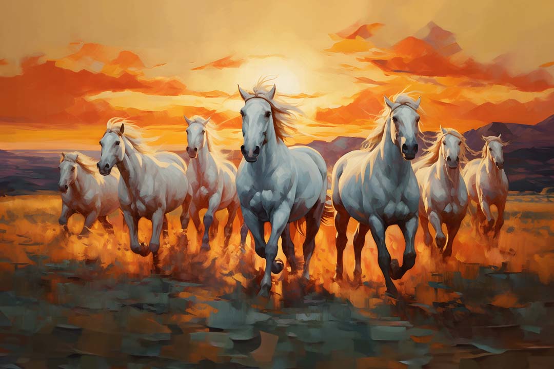 Elevate the energy of your home or workspace with this beautifully crafted 7 Running Horses Painting, inspired by the principles of Vastu Shastra. Known for symbolizing success, speed, and positive momentum, this artwork is more than just decor—it's a powerful tool to attract prosperity and growth.