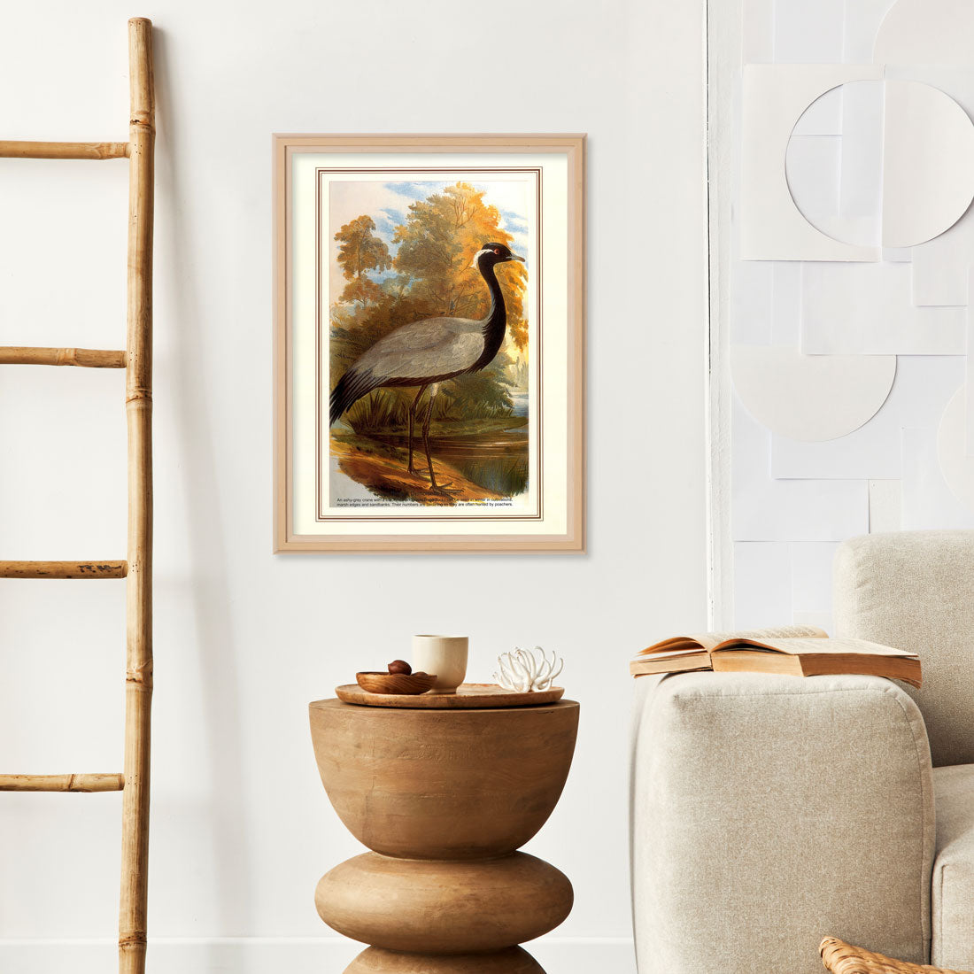 An ashy-grey crane with a black face and neck. Huge flocks can be seen in winter in cultivations, marsh edges and sandbanks. Their numbers are declining as they are often hunted by poachers.