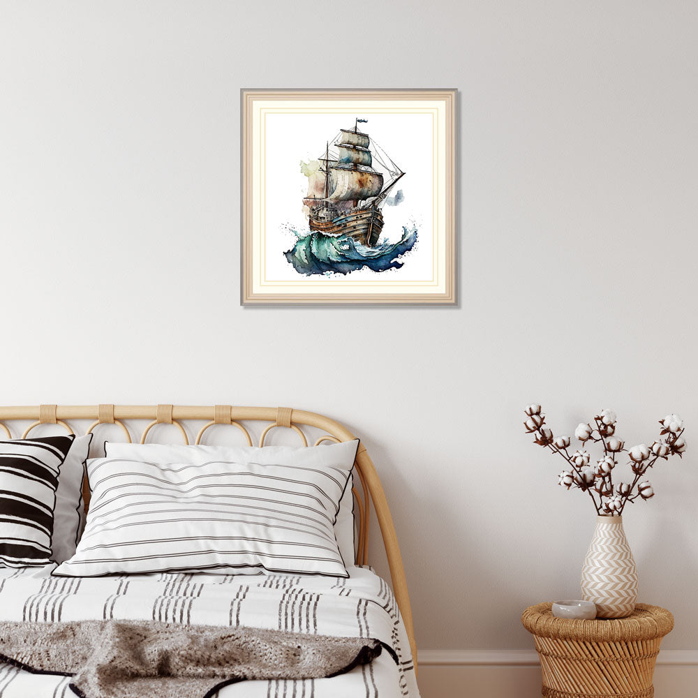 Thrilling voyage with the Watercolor Pirate Ship. Let your imagination set sail as you join the crew on their swashbuckling adventure across the painted waves. The vibrant colors and intricate details bring this ship to life, capturing the excitement and spirit of the high seas.