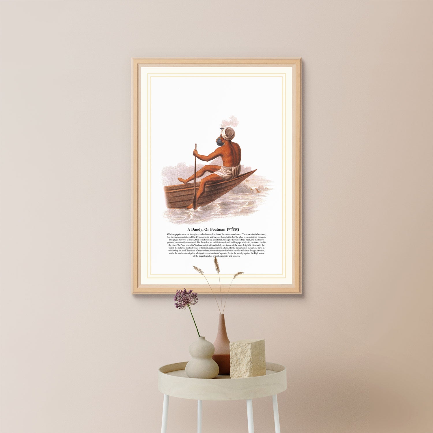 Discover the magnificence of "A Dandy, Or Boatman (नाविक)" Handmade Oil Painting. A meticulous reproduction of the painting by the renowned artist "Franz Balthazar Solvyns"1798 and 1799. This captivating artwork, designed to adorn home walls, is meticulously crafted on premium canvas paper, using the finest oil paints available.