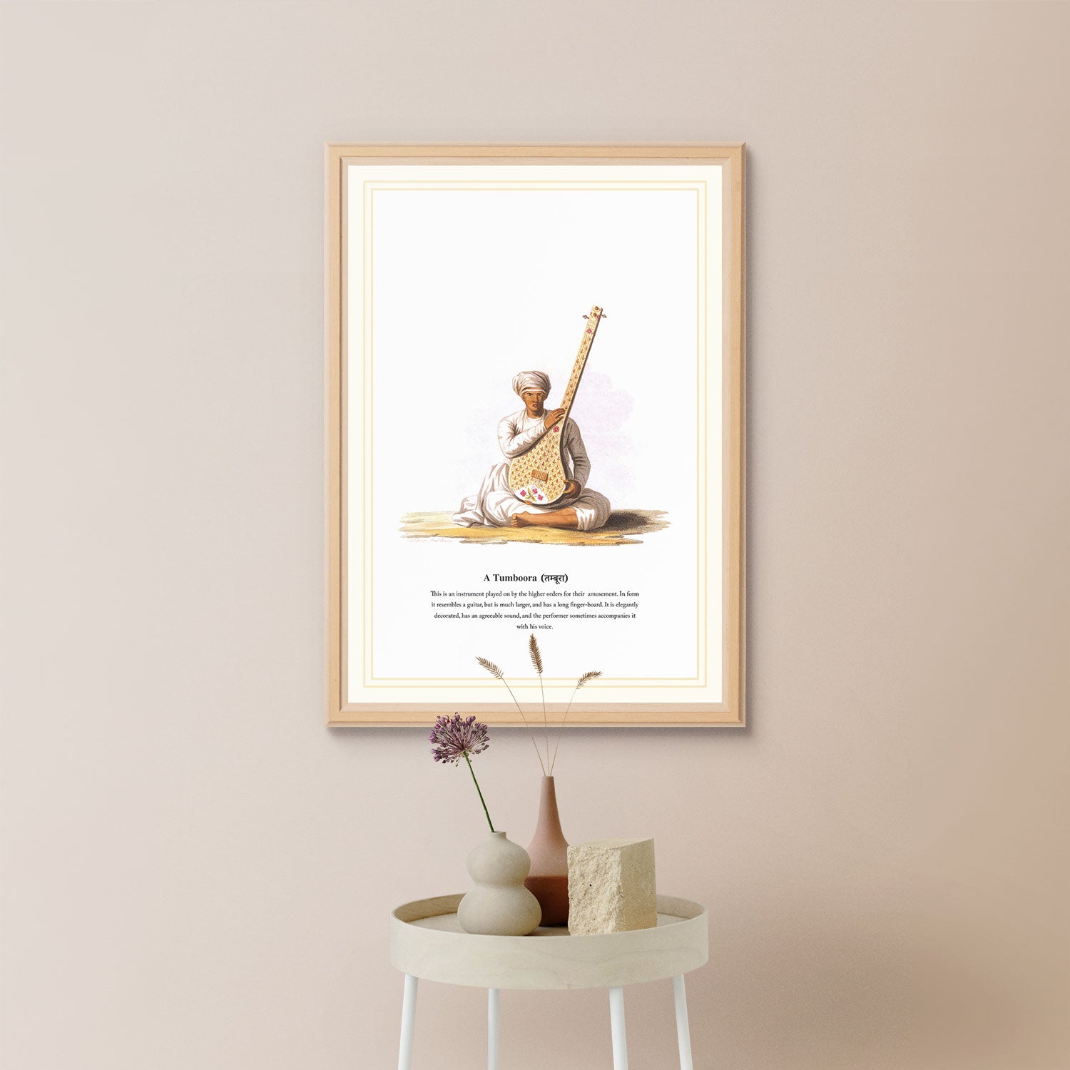 Discover the magnificence of "A Tumboora (तम्बूरा)" Handmade Painting. A meticulous reproduction of the painting by the renowned artist "Franz Balthazar Solvyns"1798 and 1799. This captivating artwork, designed to adorn home walls, is meticulously crafted on premium Fine Art paper.