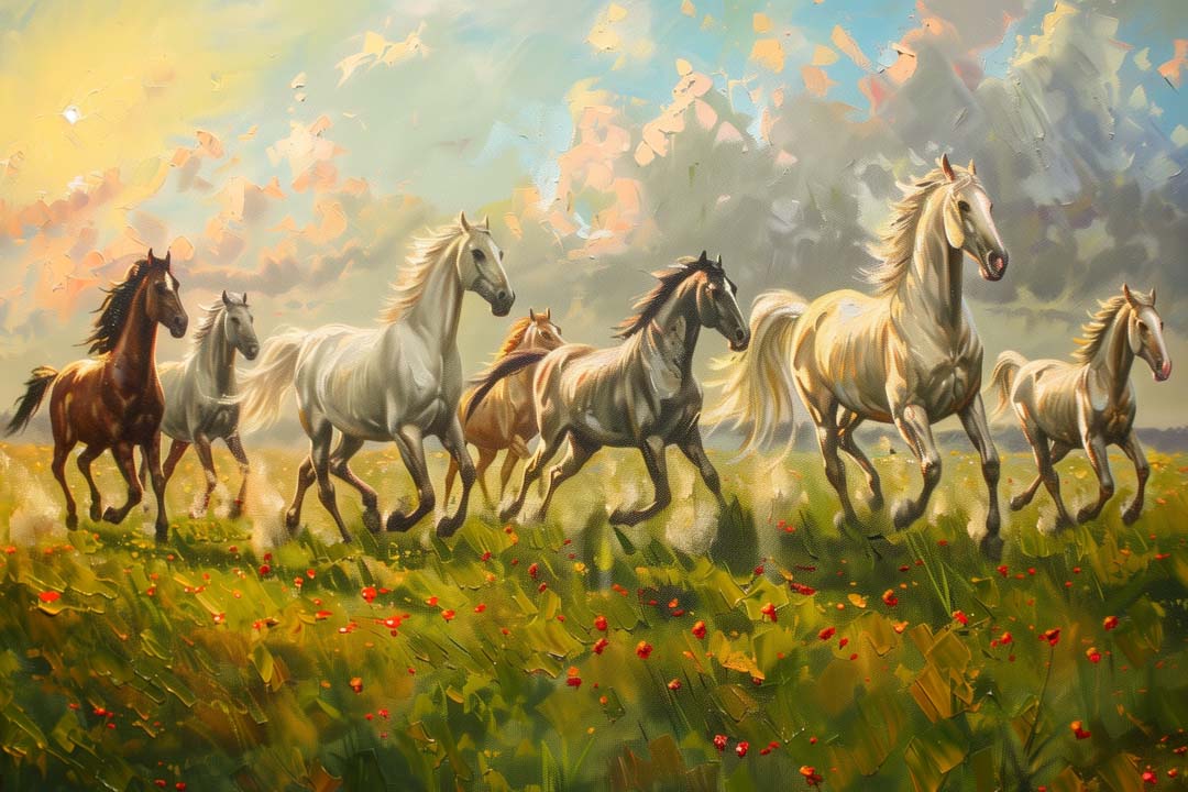'Sapta Ashwa' Freedom in Bloom Vastu Wall Art